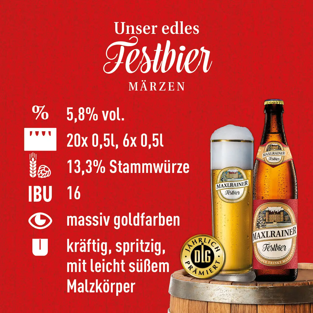 Das MAXLRAINER FESTBIER wird seit Jahren mit DLG-Gold prämiert.
