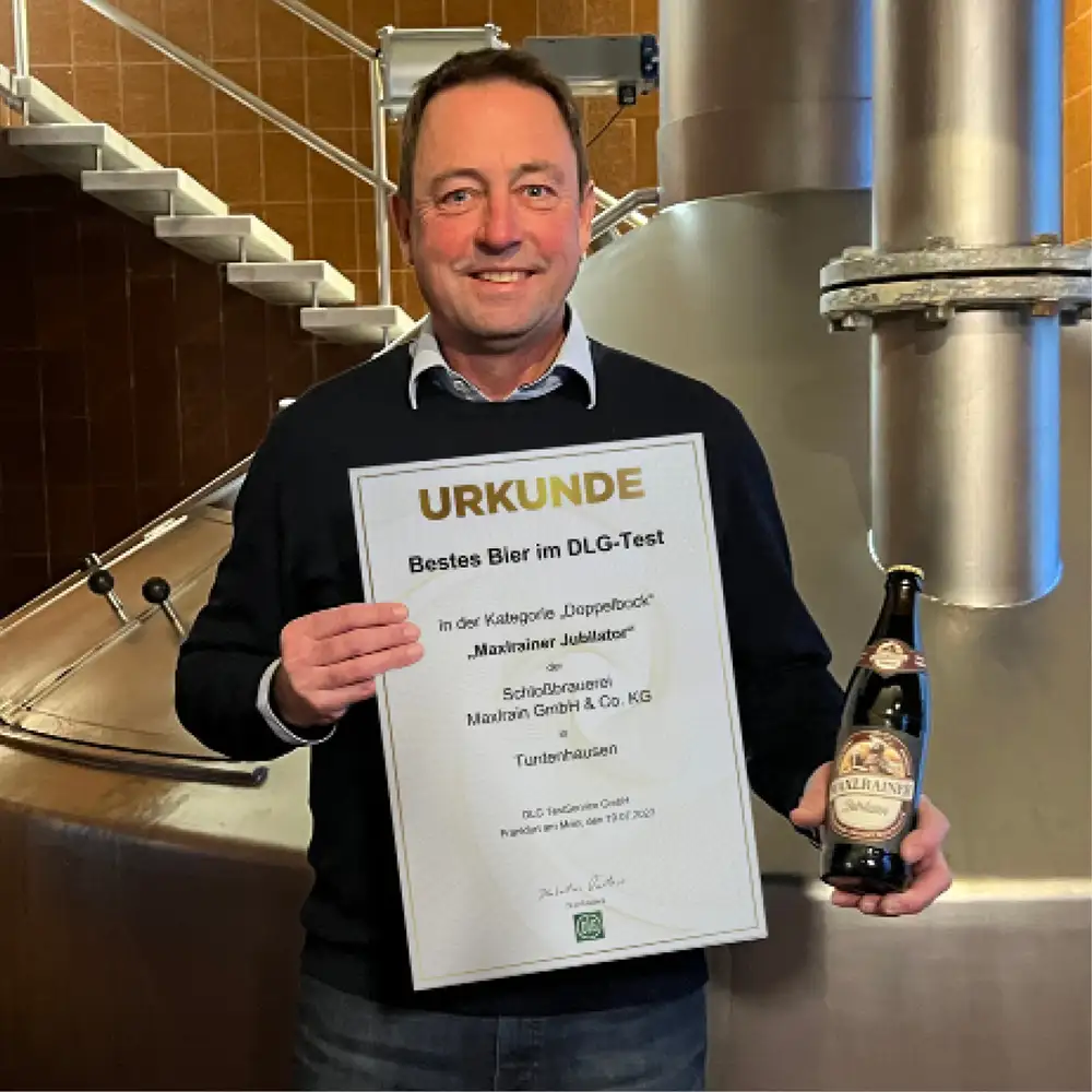 JUBILATOR è premiata da molti anni con la medaglia d’oro della Società Tedesca per l’Agricoltura (DLG). Nel 2023, il Jubilator è stato insignito del titolo di miglior Doppelbock nel concorso DLG. Prova questa straordinaria specialità di birra Maxlrainer.